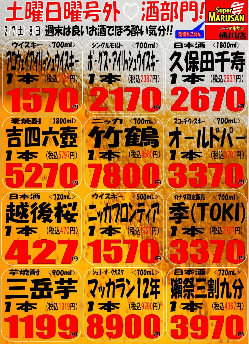 > お知らせ / 2.7(土)~2.8(日)お酒週末号外
