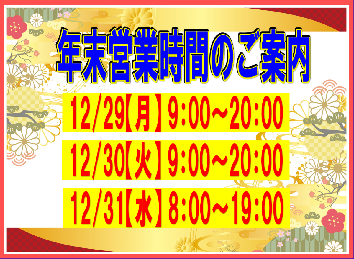 > お知らせ / 🔔年末営業時間のご案内🔔