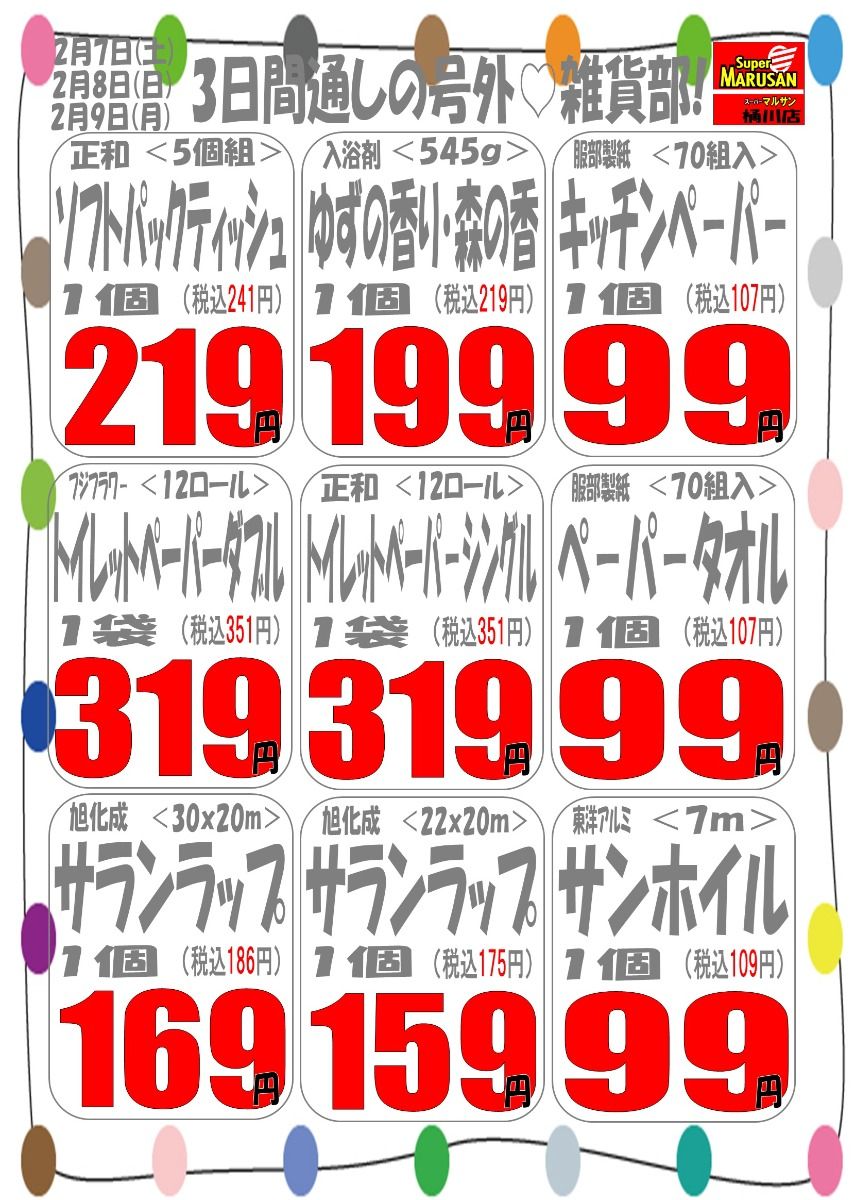 > お知らせ / 2.7(土)~2.9(月)雑貨週末号外