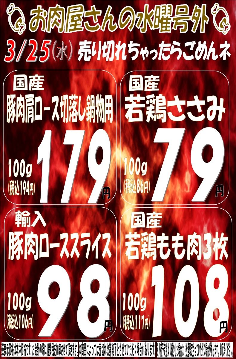 > お知らせ / 3.25(水)精肉号外